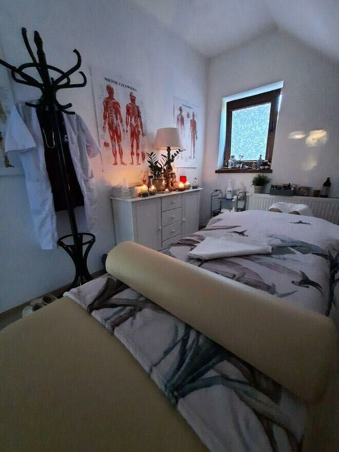 Masaże jakie wykonuje to masaż klasyczny, relaksacyjny, kończyn dolnych , górnych, obreczy barkowej, twarzy, glowy , szyja, brzuch, stopy, izomeyryczny, kamieniami, polarity, tkanki głębokie, powięzi. Stawiam bańki ogniowe.